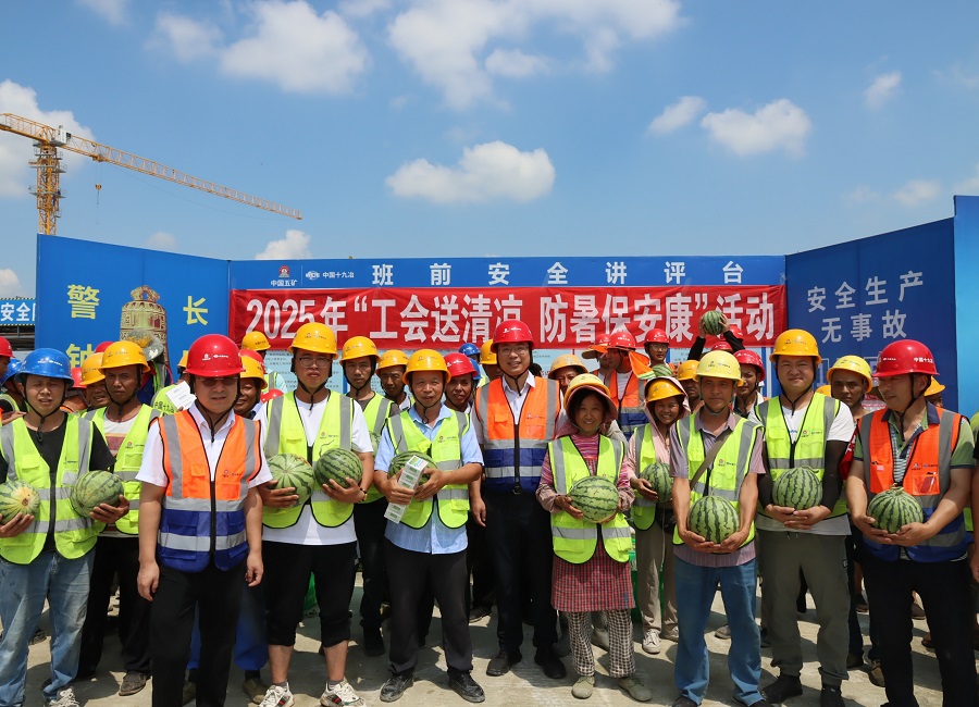 調(diào)研中,謝楊深入成渝數(shù)字科創(chuàng)園項目現(xiàn)場,詳細了解施工進度、安全管理及質(zhì)量控制等情況,并為奮戰(zhàn)在作業(yè)一線的工友及施工管理人員送上西瓜、礦泉水等防暑降溫物資。他叮囑大家要做好高溫防護,樹牢“安全第一,健康第一”的意識,平穩(wěn)施工、平安作業(yè)。